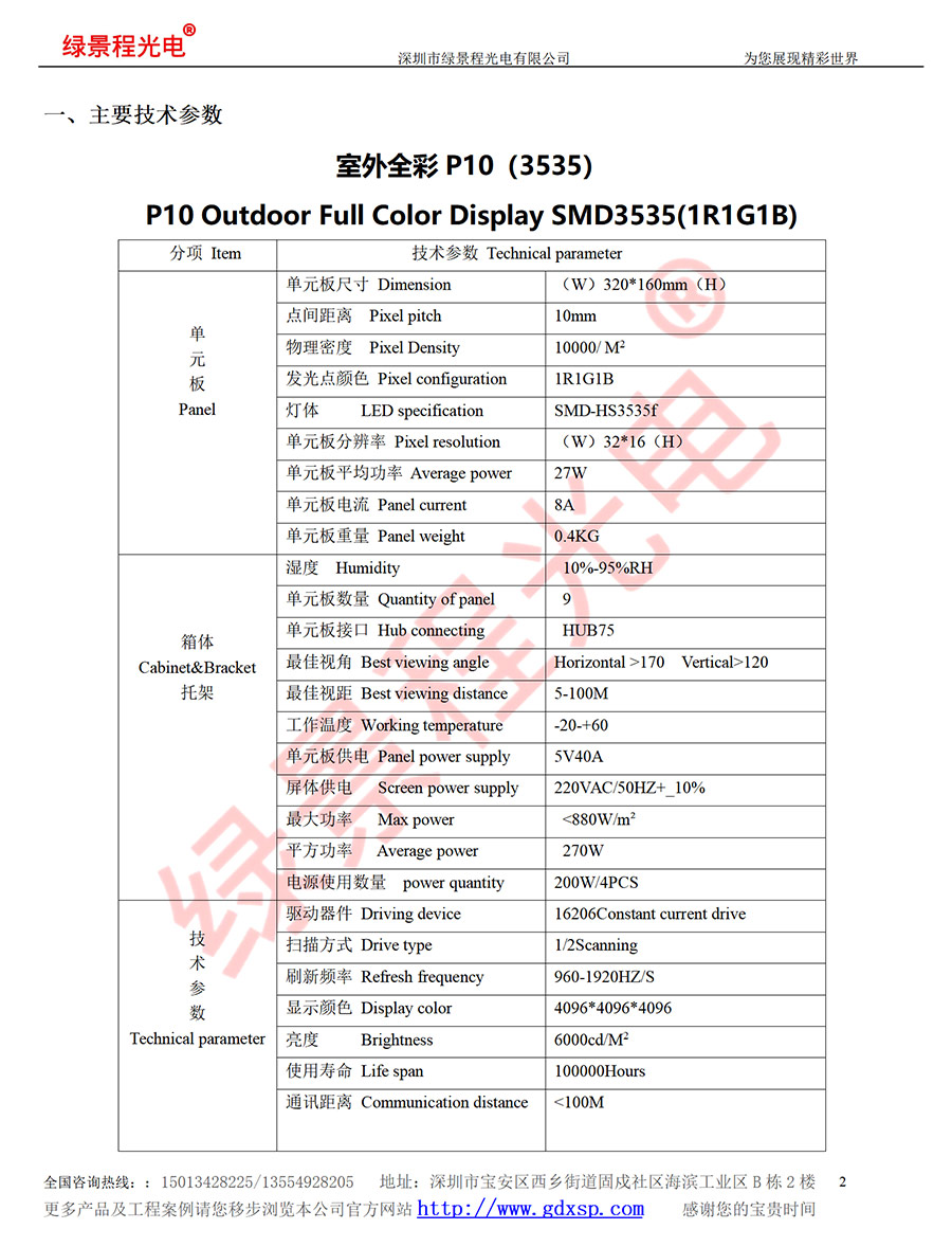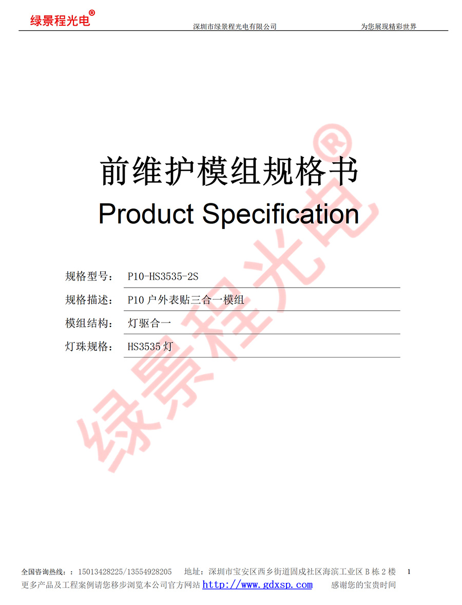 綠景程光電戶外前維護(hù)P10-SMD3535-2S-320X160mm