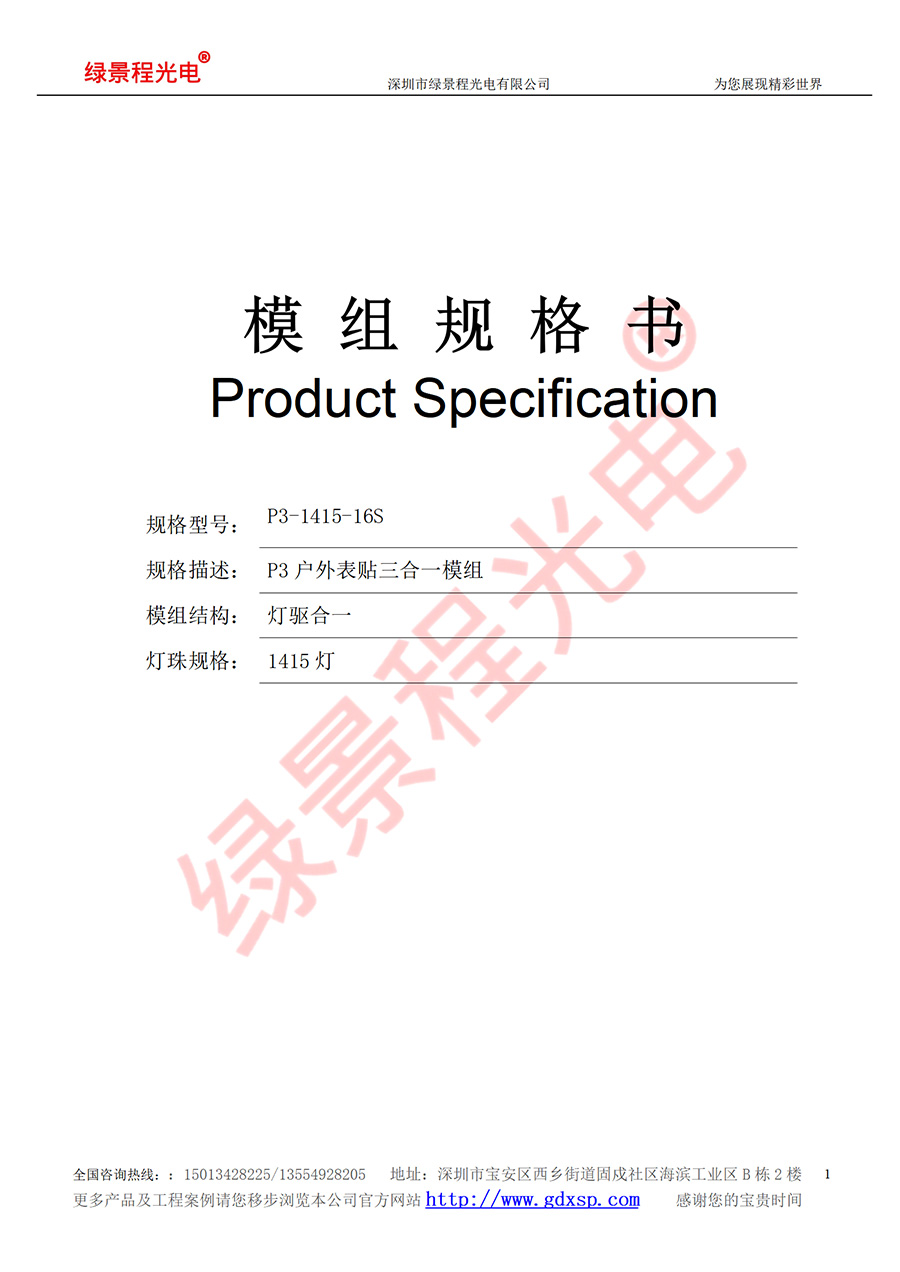 綠景程光電戶外P3-SMD1415-16S-192X192mm