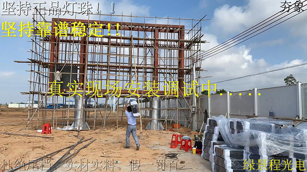 江門(mén)市臺(tái)山經(jīng)濟(jì)開(kāi)發(fā)區(qū)鰻魚(yú)產(chǎn)業(yè)園戶(hù)外p4全彩屏施工中