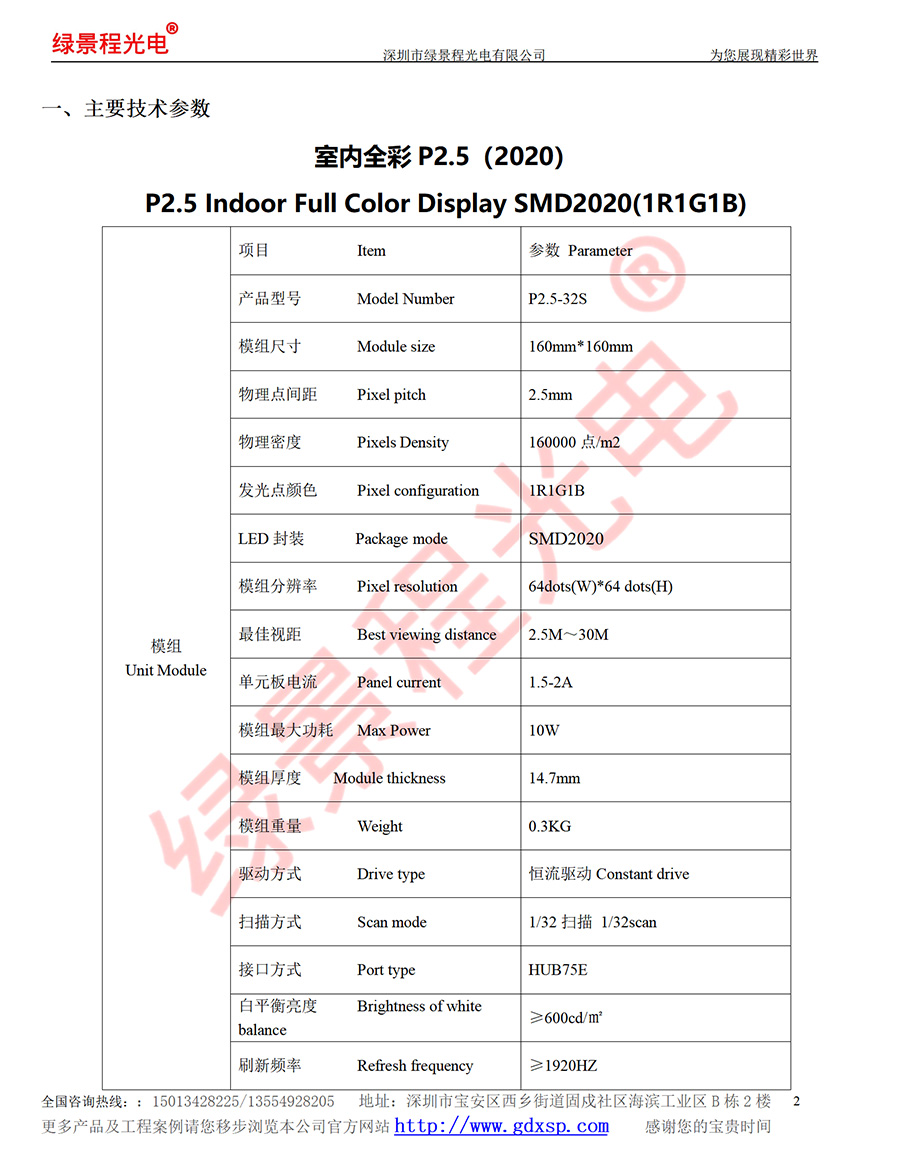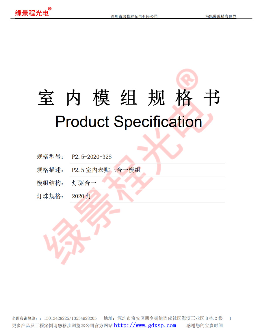 綠景程光電室內(nèi)P2.5-SMD2020-32S-160X160mm