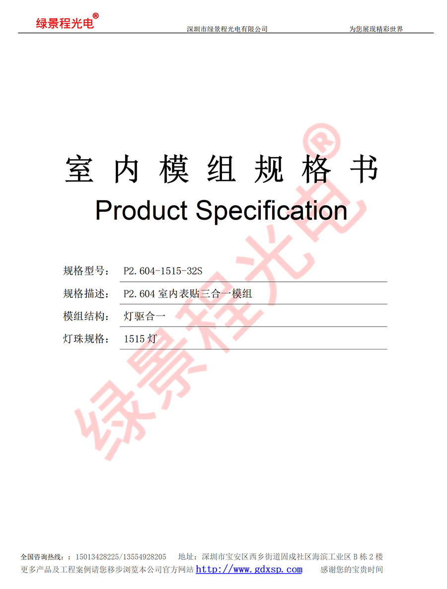 綠景程光電室內(nèi)P2.604-SMD1515-32S-250X250mm