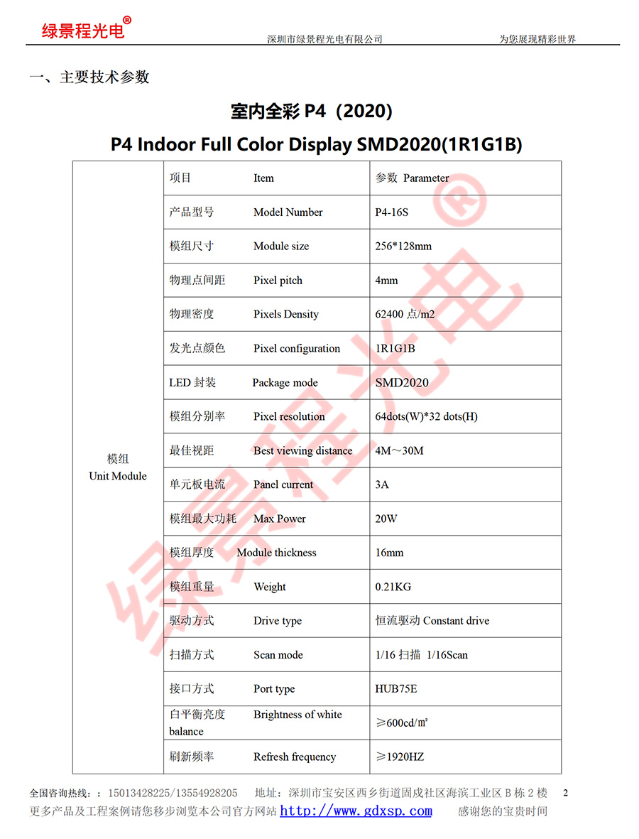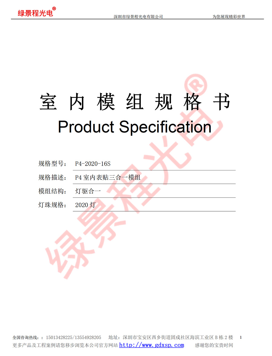 綠景程光電室內(nèi)P4-SMD2020-16S-256X128mm
