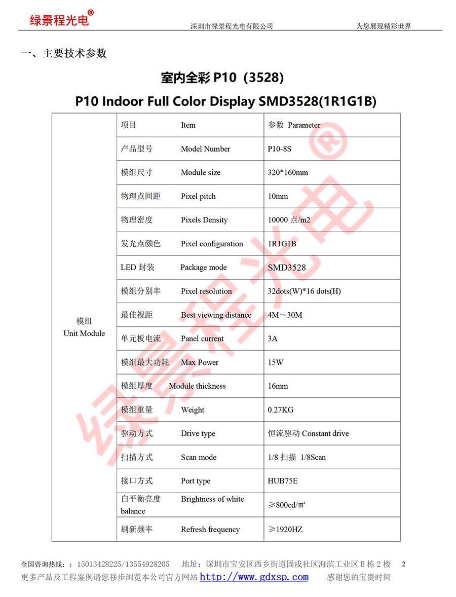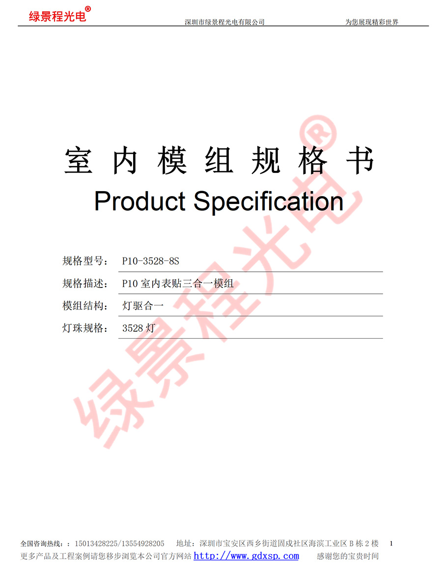 綠景程光電室內(nèi)P10-SMD3528-8S-320X160mm