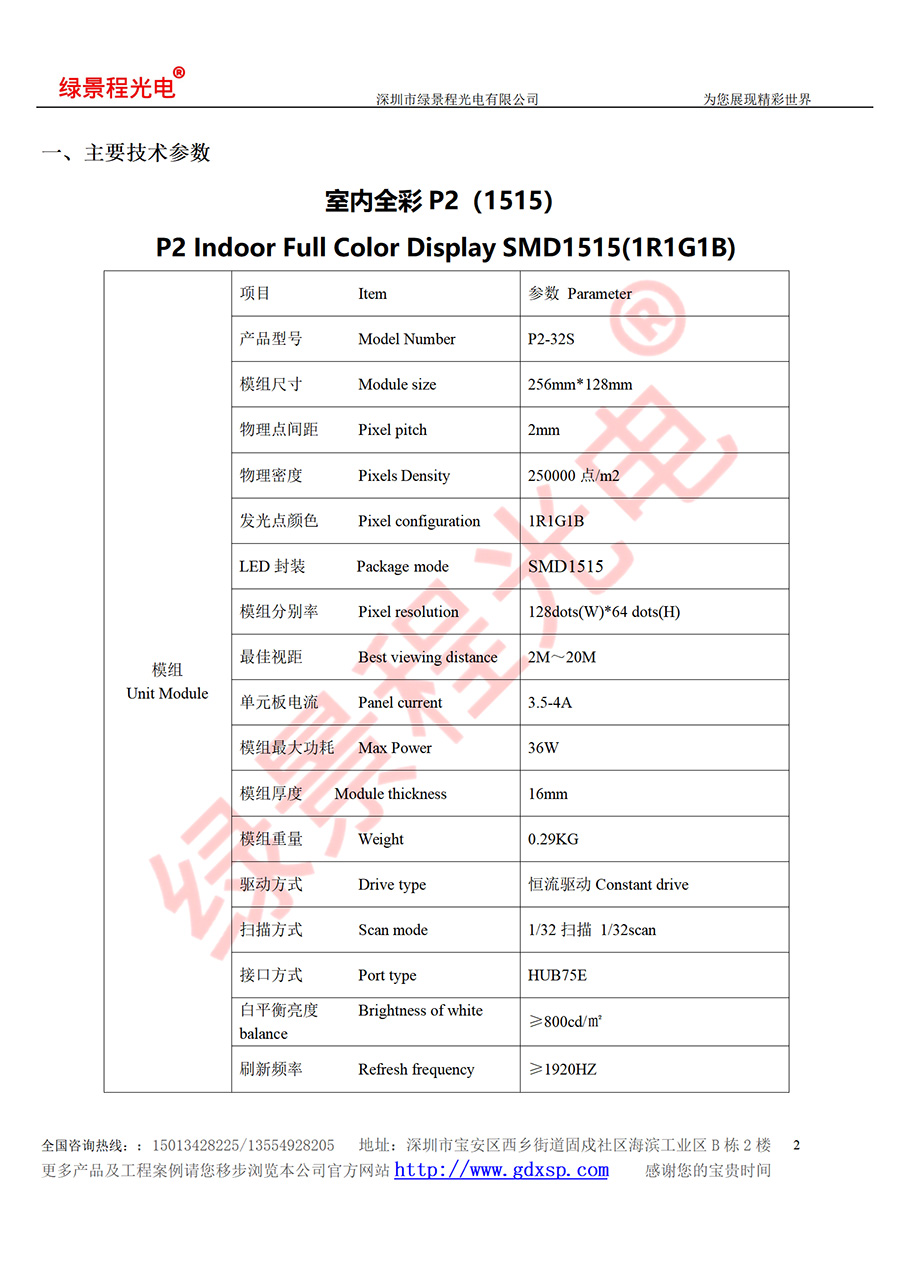 綠景程光電室內P2-SMD1515-32S-256X128mm