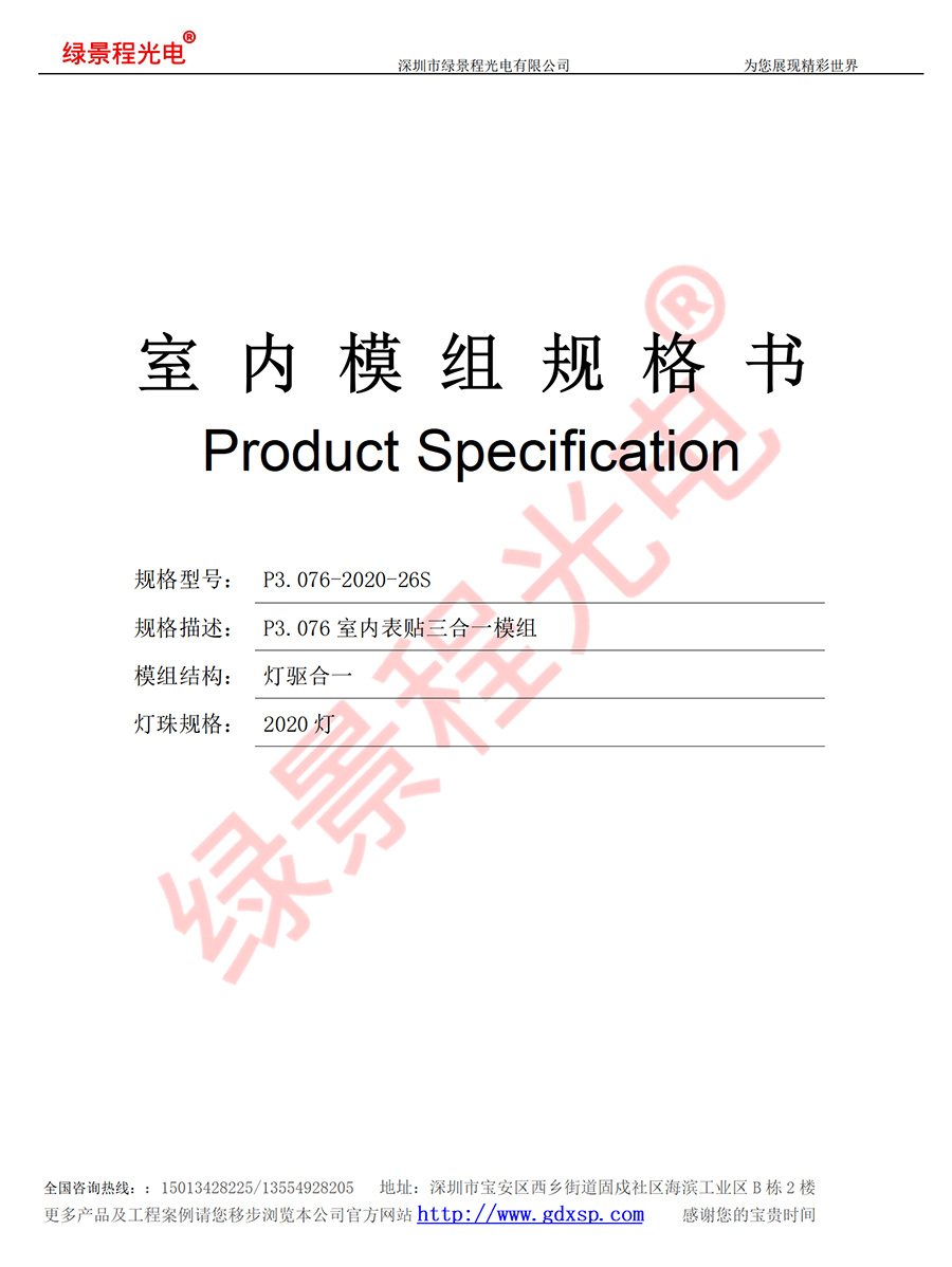 綠景程光電室內(nèi)P3.076-SMD2020-26S-320X160mm